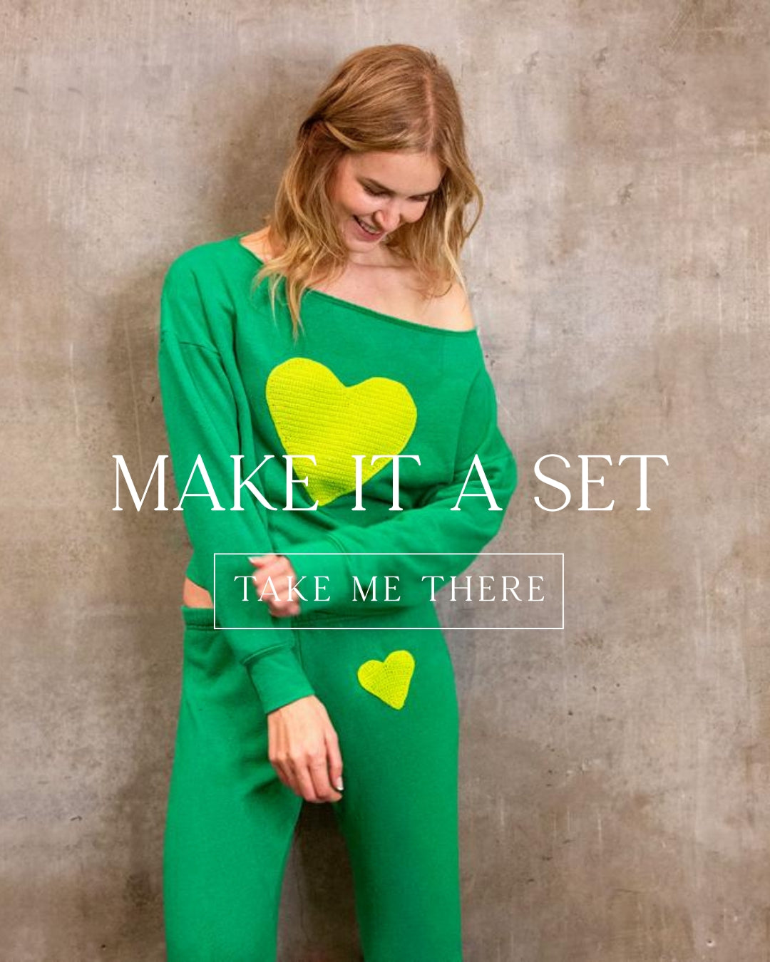 Charcoal Grey Off-the-Shoulder Sweatshirt with Neon Yellow “STOKED” Crochet